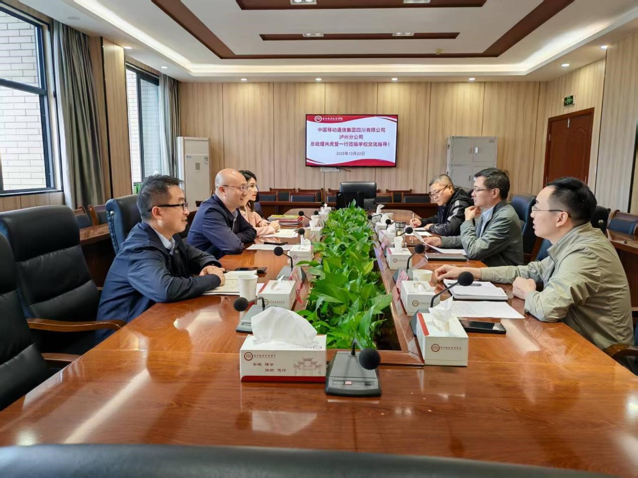 10月23日,中国移动通信集团四川有限公司泸州分公司总经理肖虎登一行到我校考察交流。我校党委书记何杰,党委常委、副院长鲍学东以及信息技术中心负责人陪同调研。